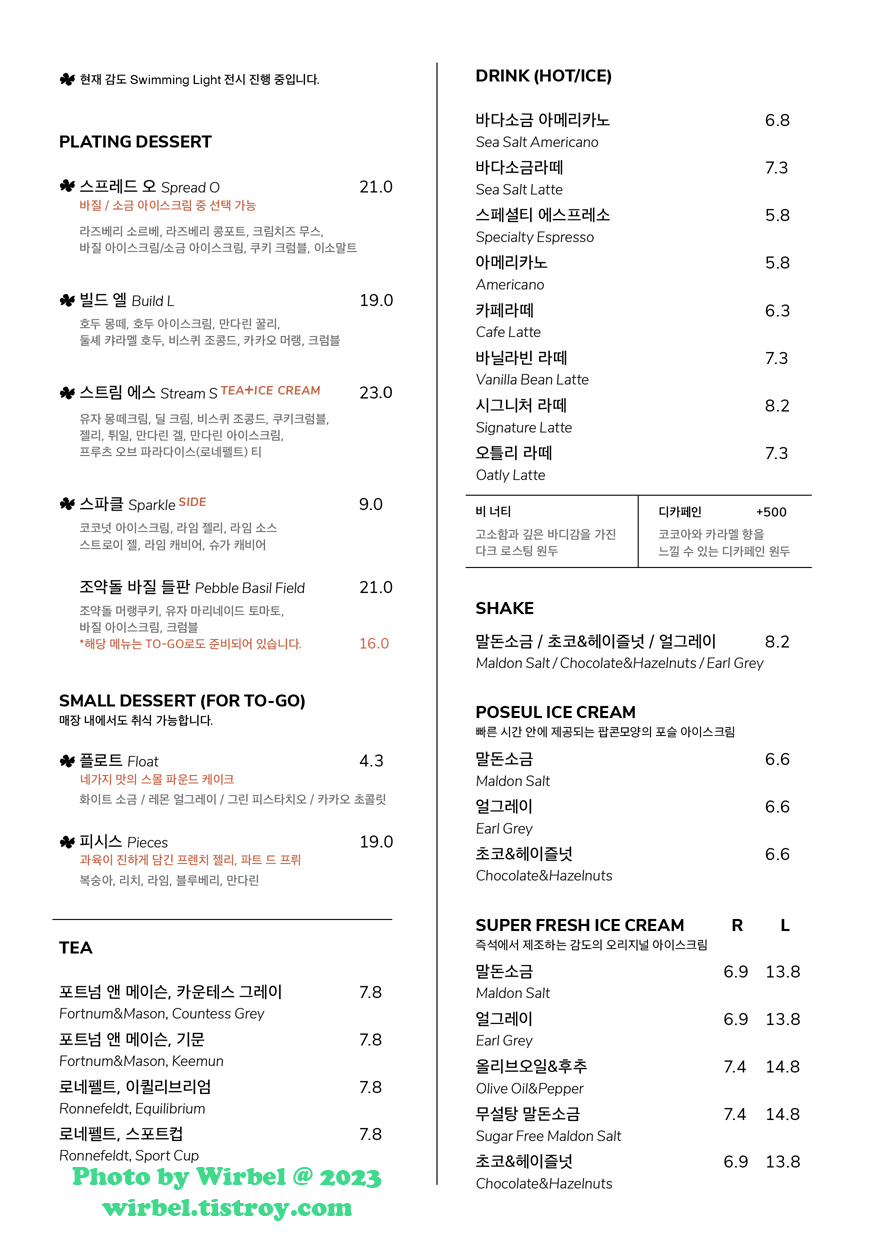 서울숲 살롱드호우섬 메뉴 가격.