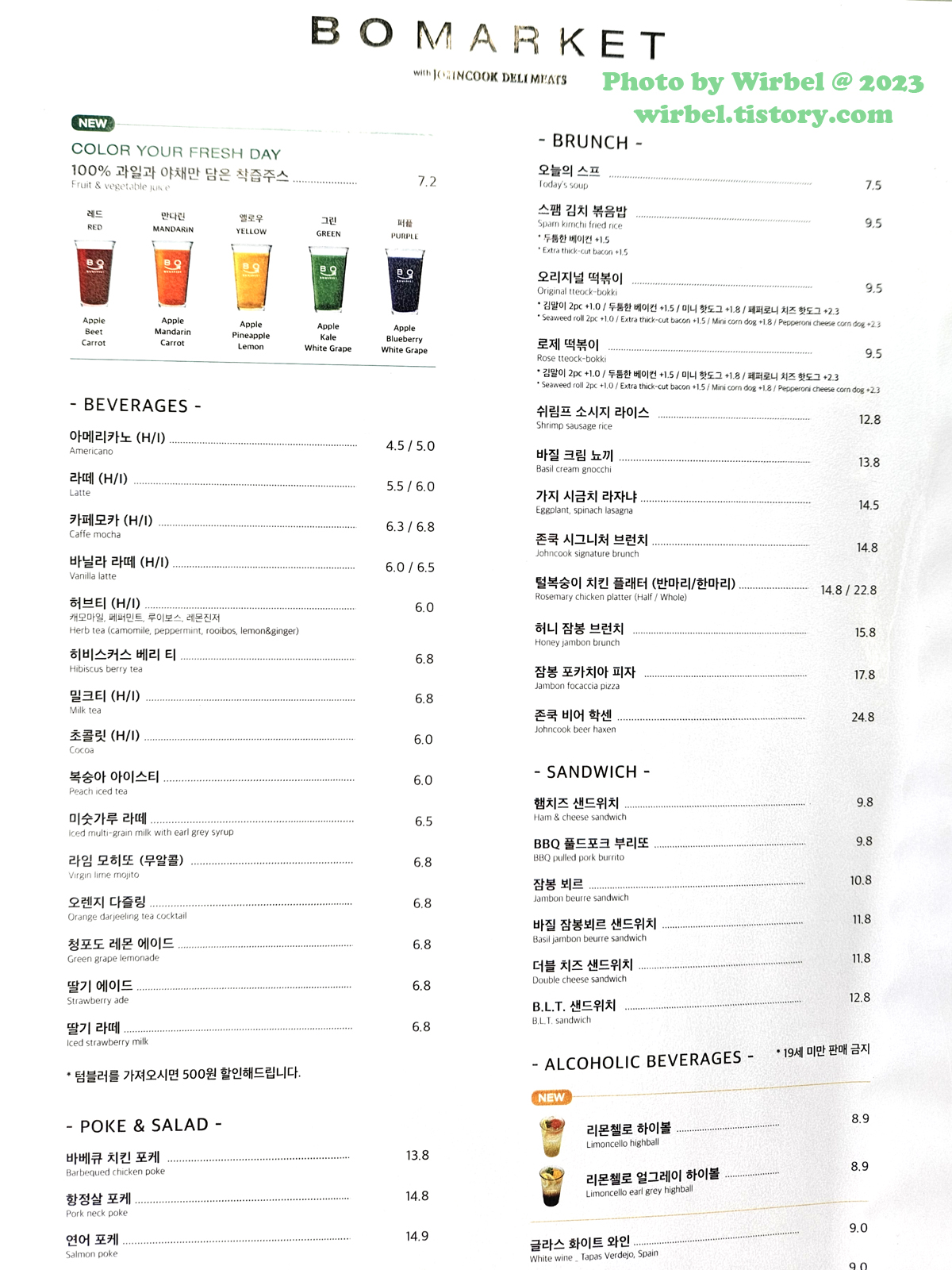 서울숲 보마켓 메뉴 가격.