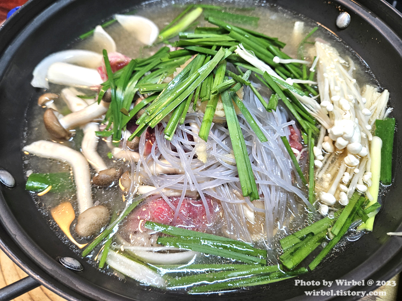 불고기, 버섯, 당면, 부추가 들어간 불고기입니다.