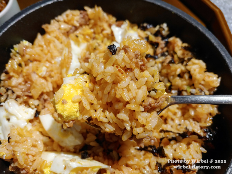 아이들이 먹을 수 있을 정도로 맵지 않은 볶음밥입니다.