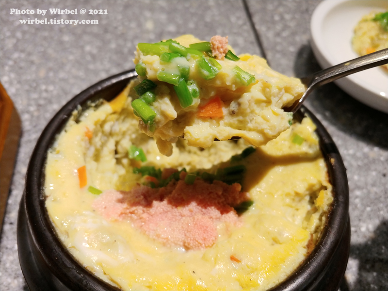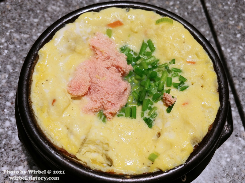 보슬보슬한 계란찜과 명란의 조합이 일품인 명란계란찜.