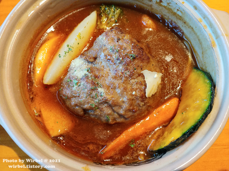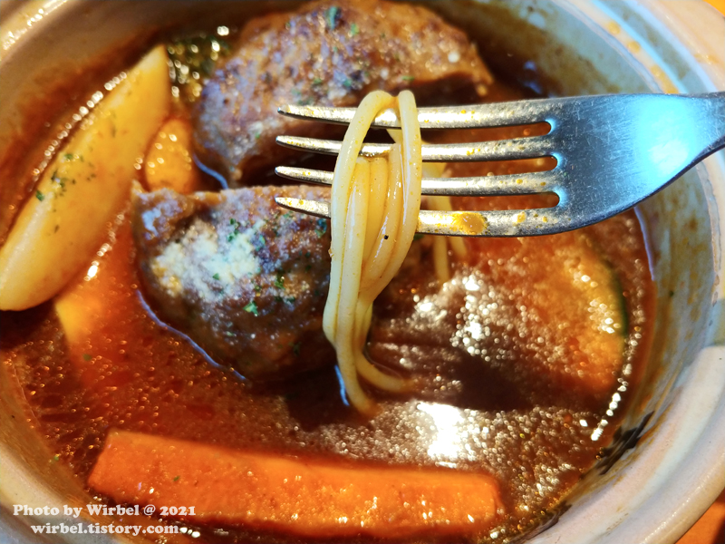 뚝배기에 담겨 나오는 함박이어서 소스가 졸아들 걸 염려해서 그런지 몰라도 소스는 상당히 묽은 편입니다.