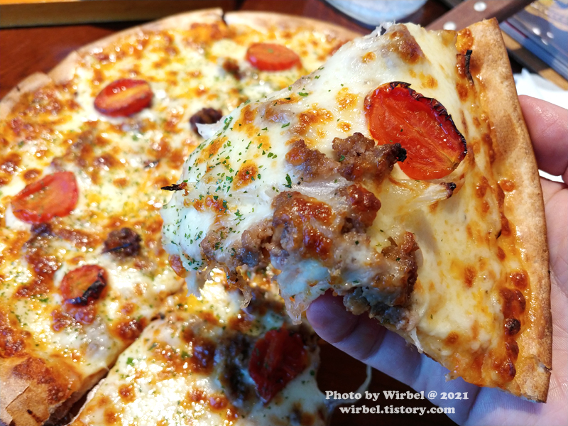 개인적으로는 함박스테이크집의 피자니깐 고기가