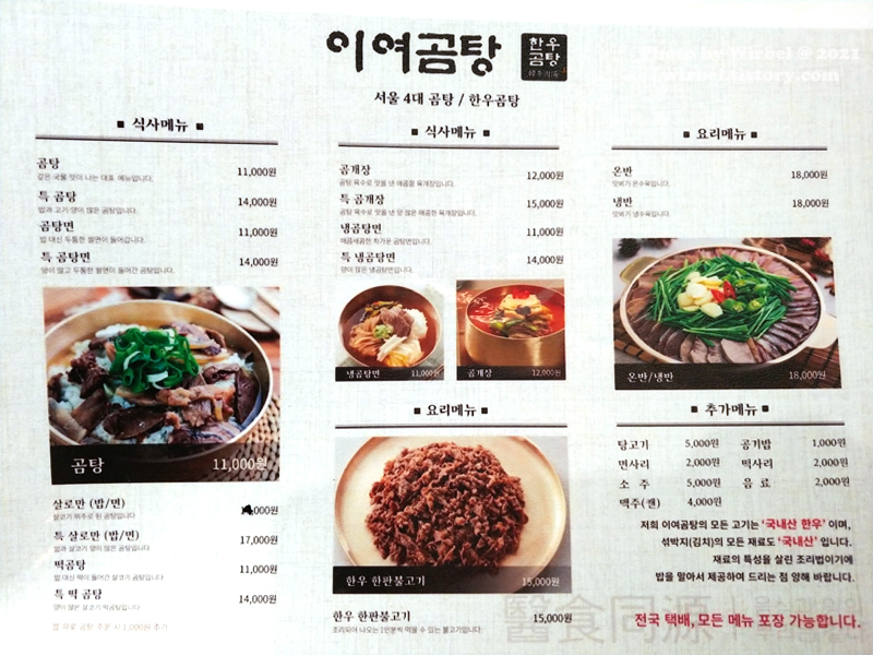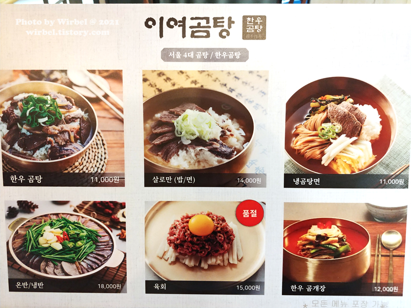 이여곰탕 메뉴 가격.
