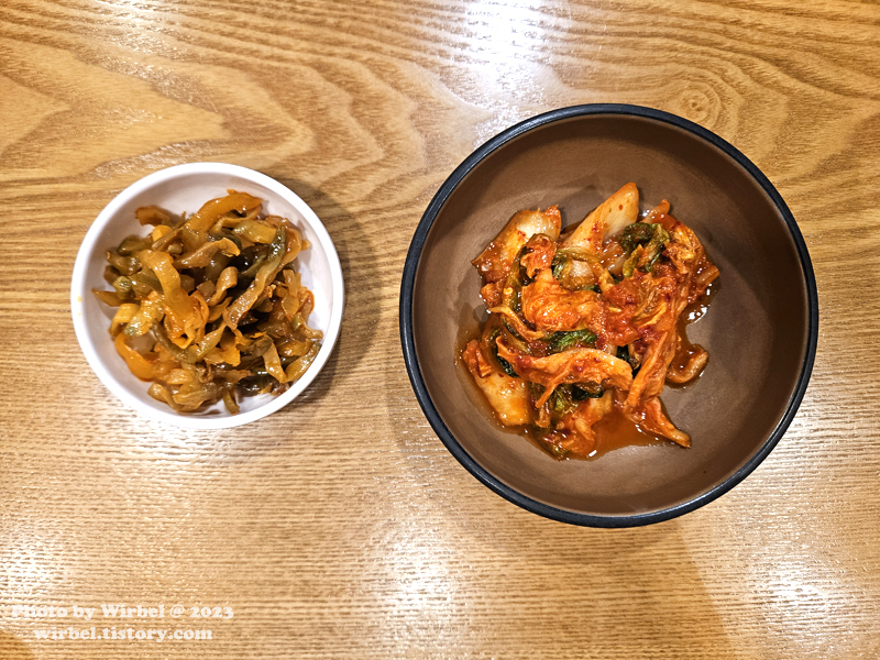 혜화역 란주칼면 밑반찬 짜사이, 김치.