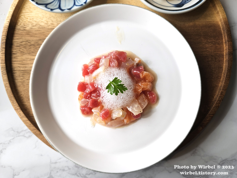 <해산물 세비체와 레몬 폼 / Tuna, Salmon, Hallbut, Lemon Form>
