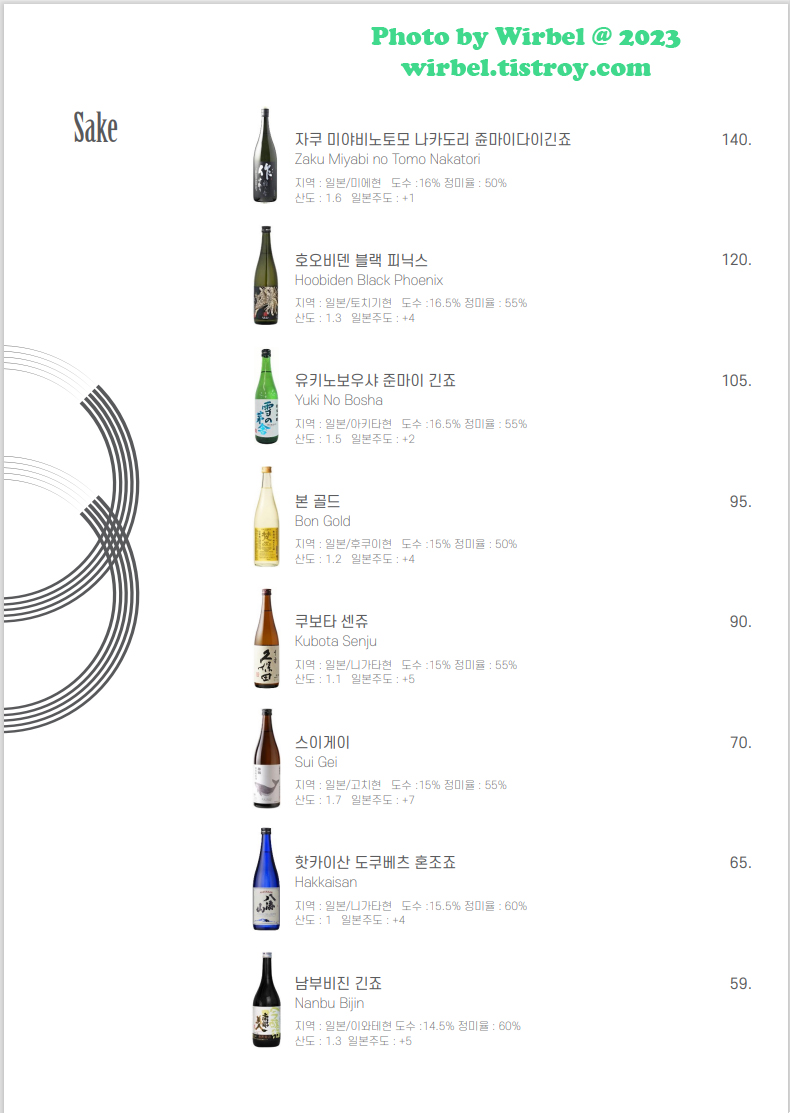 한줄평: 깔끔하게 만날 수 있는 퓨전 일식 양식! 방문 시기: 2023년 10월 이날 가격: 95,000원 시그니처 메뉴: - 재방문의사: 있음 |