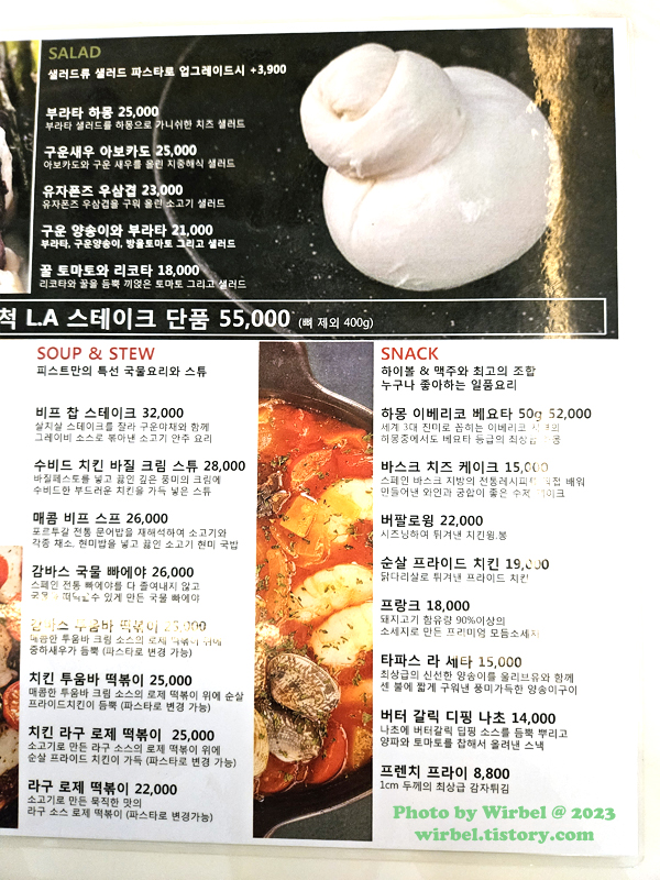 올림픽공원 맛집 피스트 메뉴 가격.