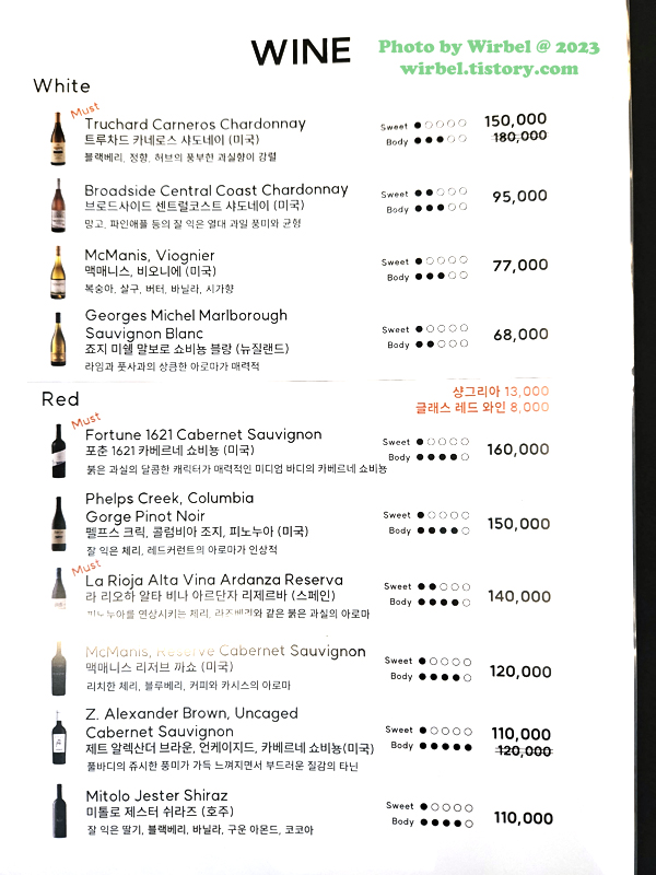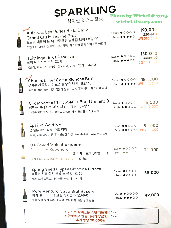 올림픽공원 JYP사옥 피스트 와인리스트.