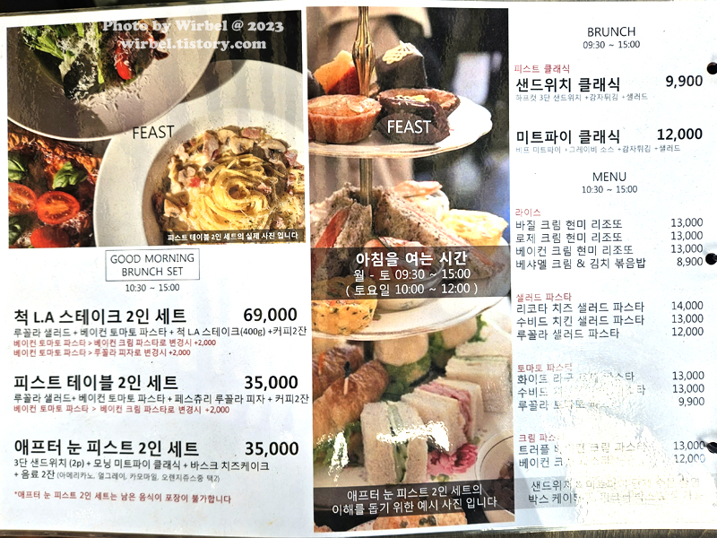 방문한 날이 일요일이어서 그런지 몰라도 피스트 브런치 메뉴판은 외부에만 있었습니다.