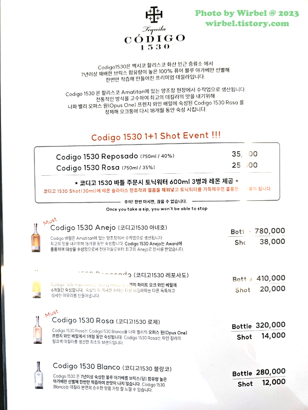 올림픽공원 술집 피스트 데낄라 가격.