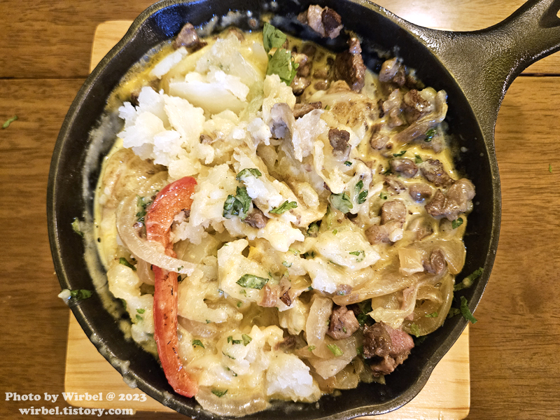 베이크 포테이토와 멜팅 치즈, 양파, 소고기의 완벽한 조화.