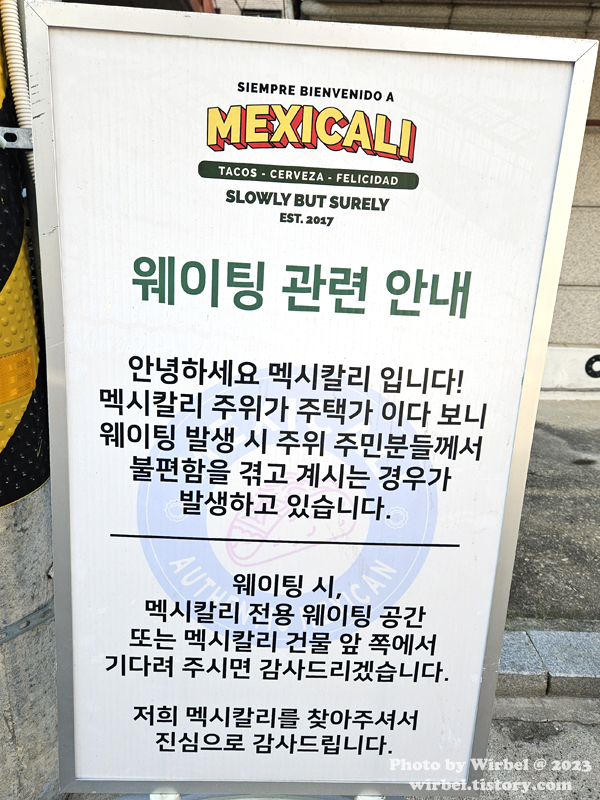 멕시칼리 웨이팅 발생 시 대기자 명단 혹은 태블릿에 입력하면 됩니다.