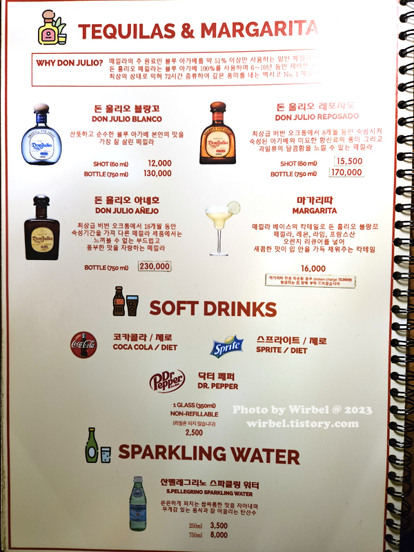 광진구 멕시코 식당 멕시칼리 데낄라 음료 메뉴 가격.