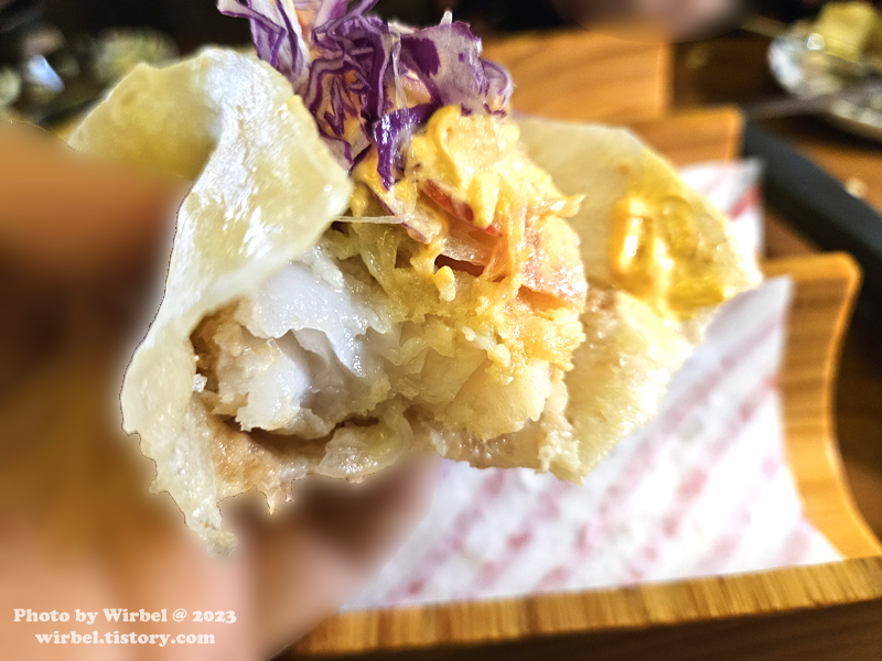 다른 곳에서 보기 어려운 유니크한 멕시칼리 생선타코로 맛있습니다. 츄릅~~