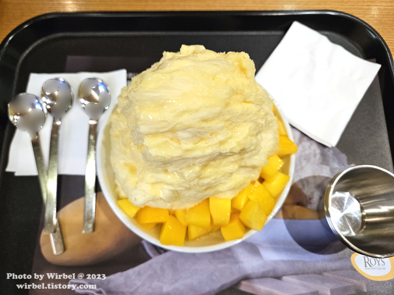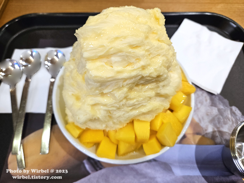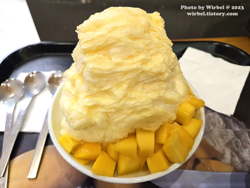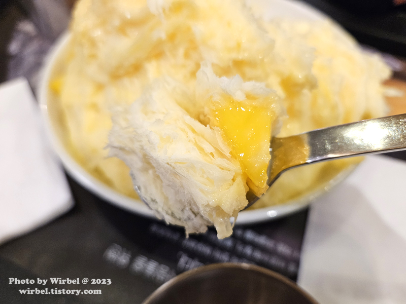 곱게 간 얼음의 망고 빙수를 먹으니 시원하니 좋습니다.