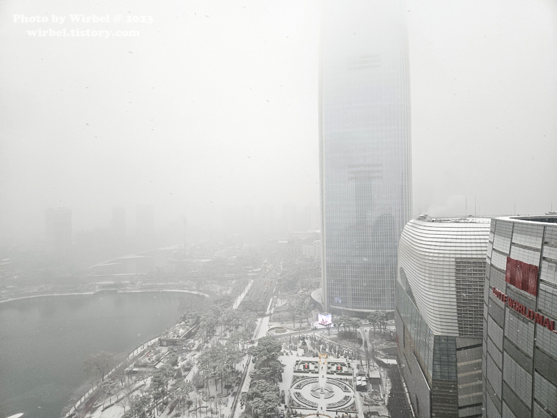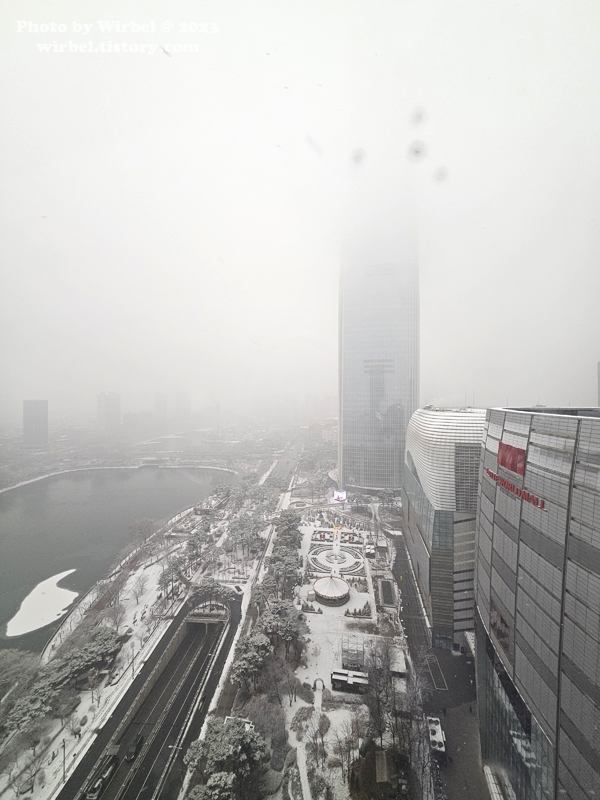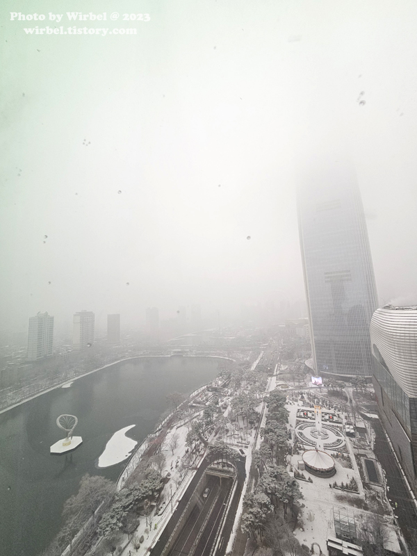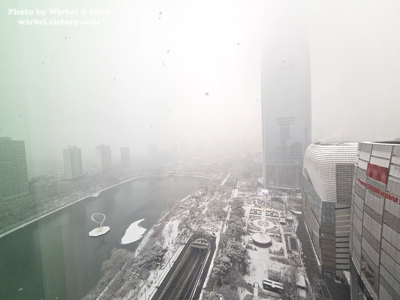 롯데월드타워 꼭대기가 보이지 않는군요.