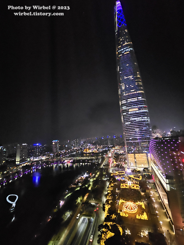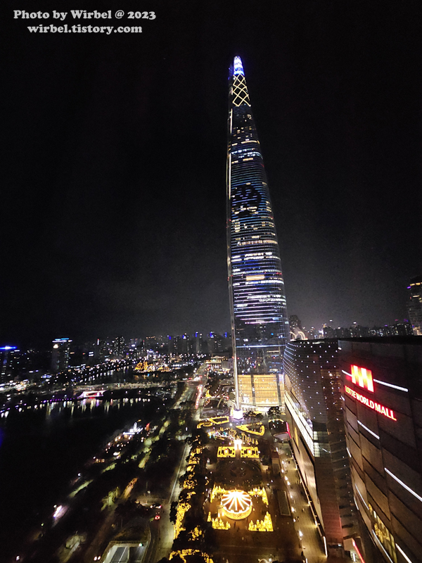 롯데타워는 조명이 계속 반짝반짝 빛나고 있습니다.