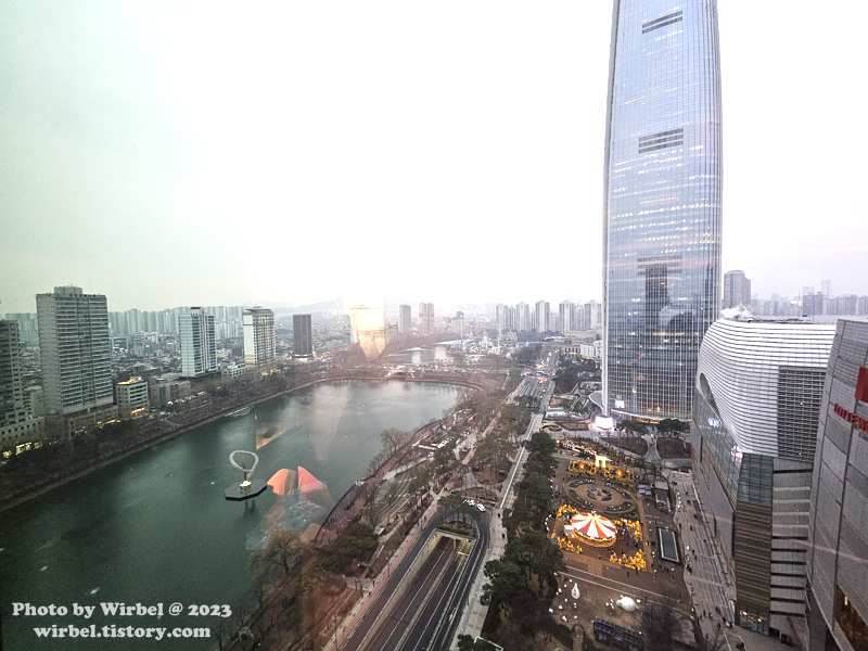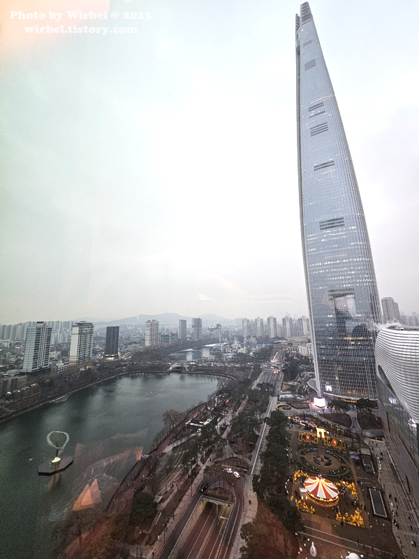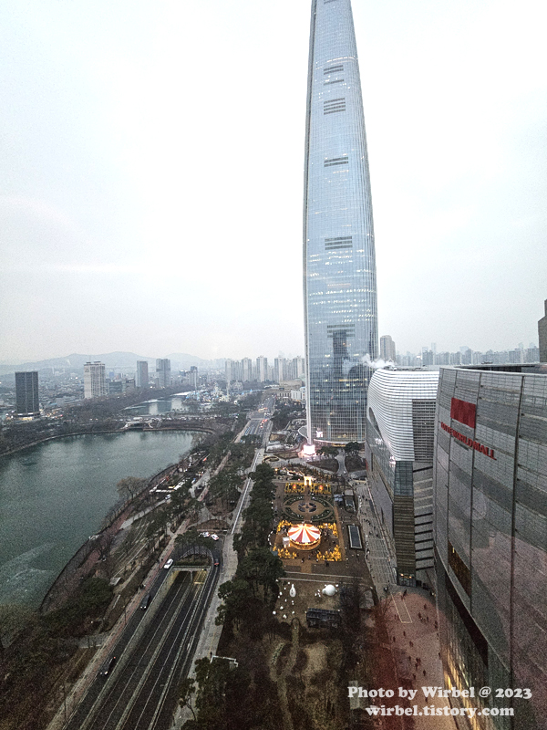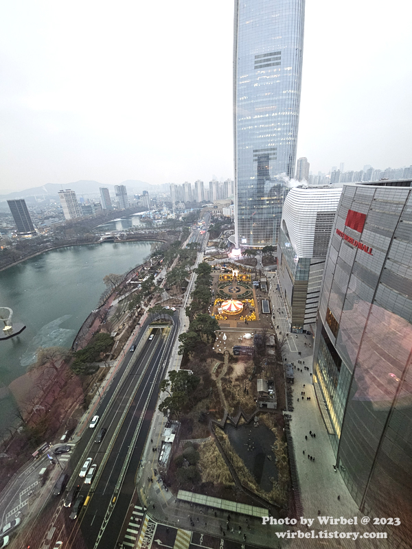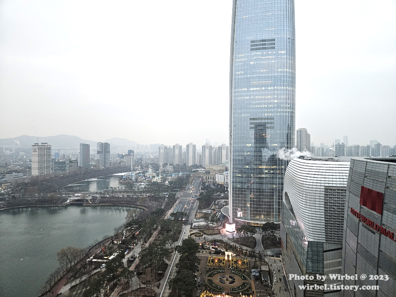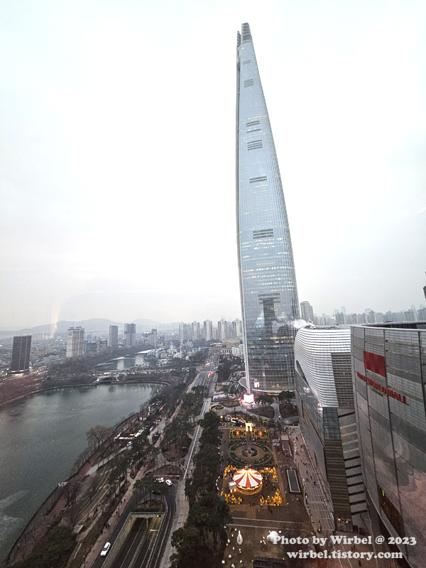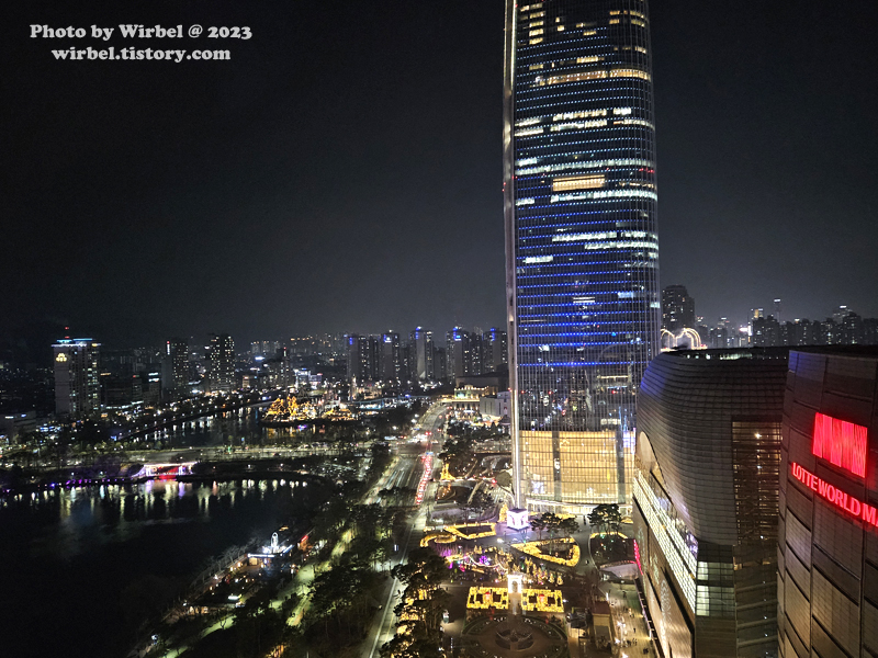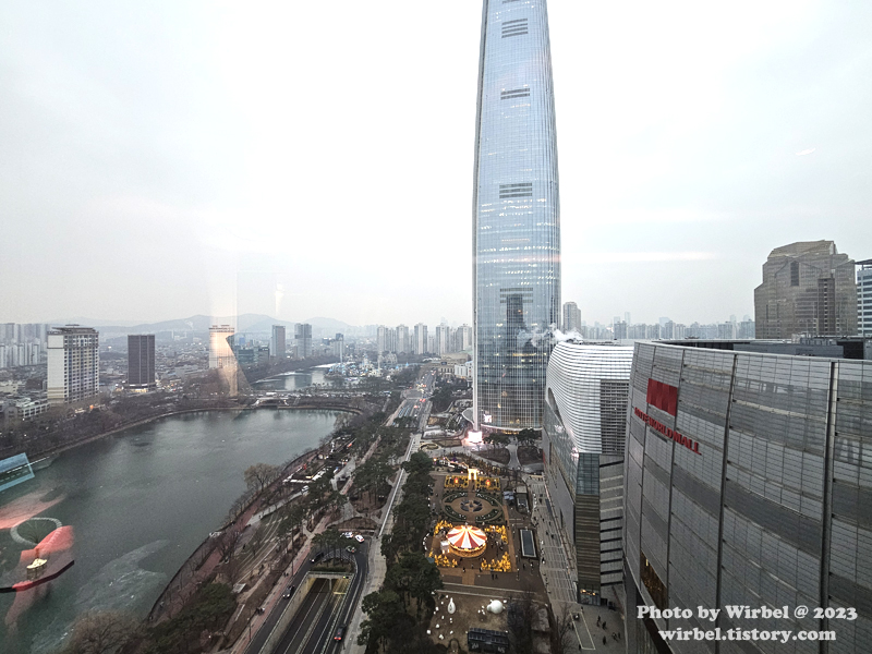 소피텔앰배서더서울 롯데타워, 롯데월드몰이 보이는 전망입니다.