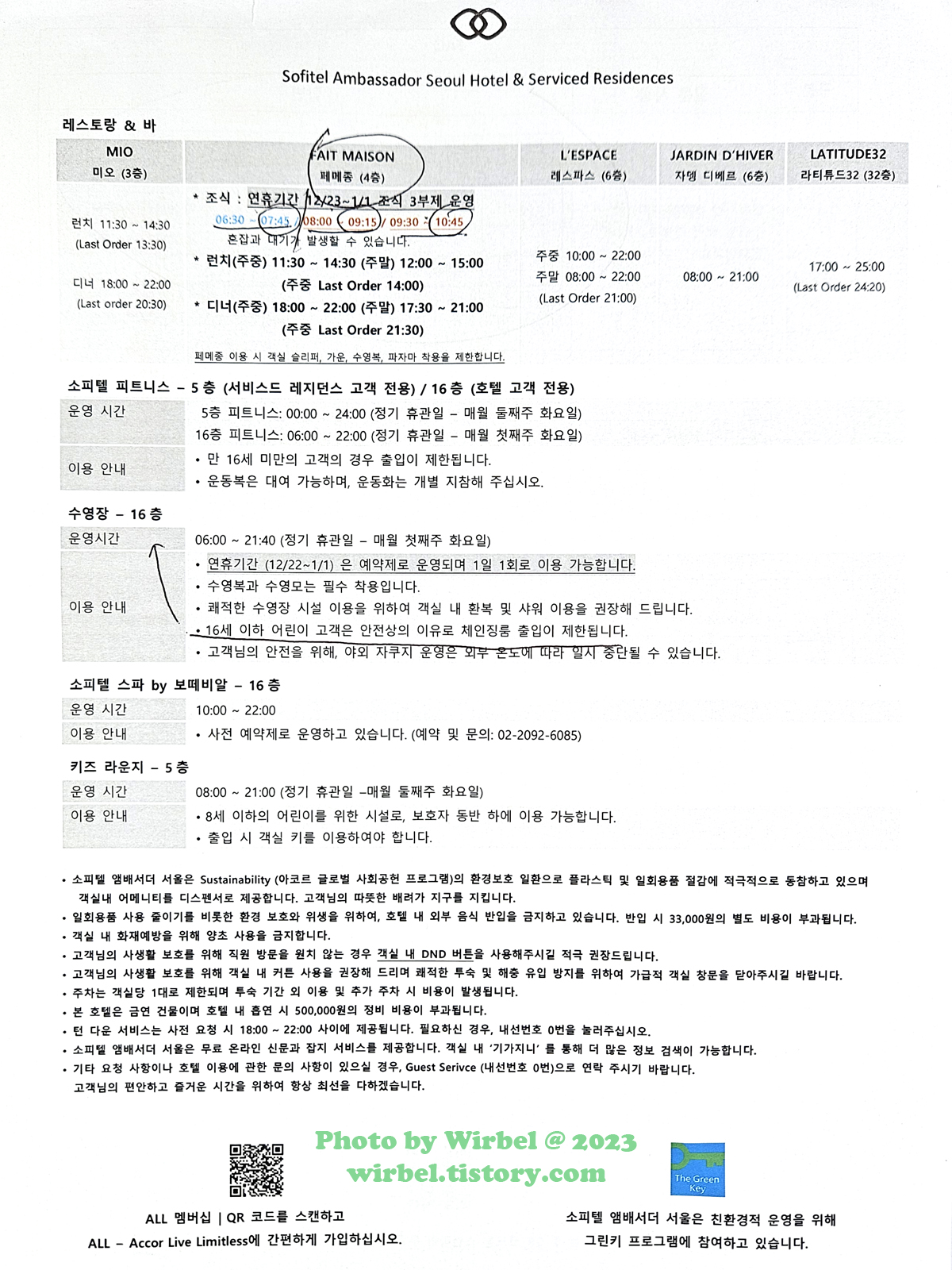 2023년 12월 소피텔 앰배서더 서울 호텔 숙박 후기 https://wirbel.tistory.com/761