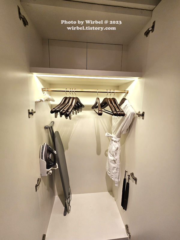 옷장, 가운, 다리미판과 다리미, 구두광택기.