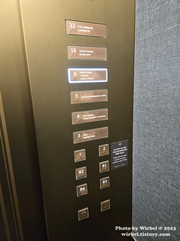 소피텔 서울 호텔 객실 엘리베이터는 6대입니다.