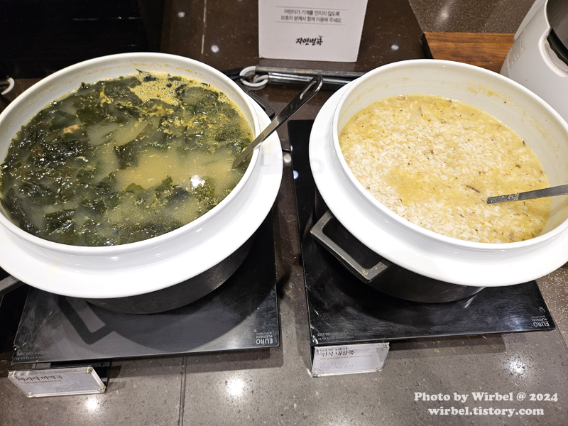 바지락 미역국, 전복내장죽.