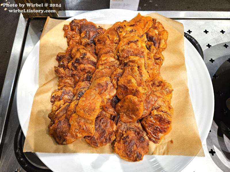 바싹불고기 원산지 표시판에 소고기와 돼지고기가 있는 것을 보면 혼합해서 사용하는 것 같습니다.