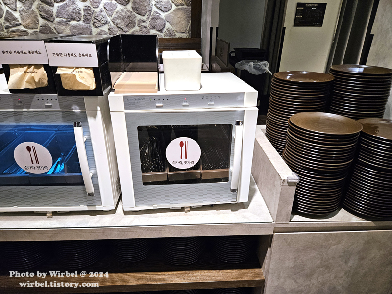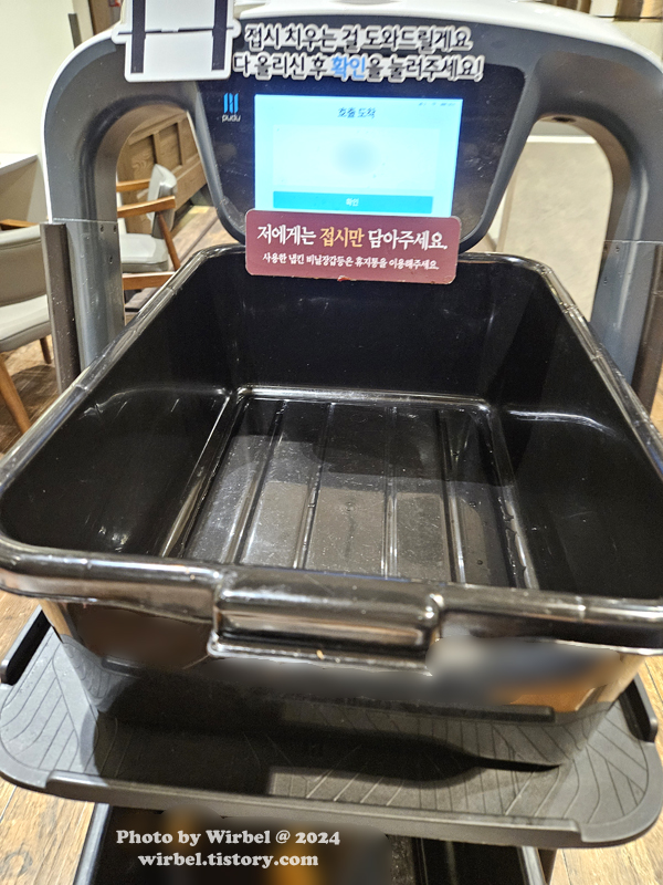 다 먹은 그릇은 셀프 비대면 퇴식구 이용 혹은 로봇을 불러서 정리해도 됩니다.