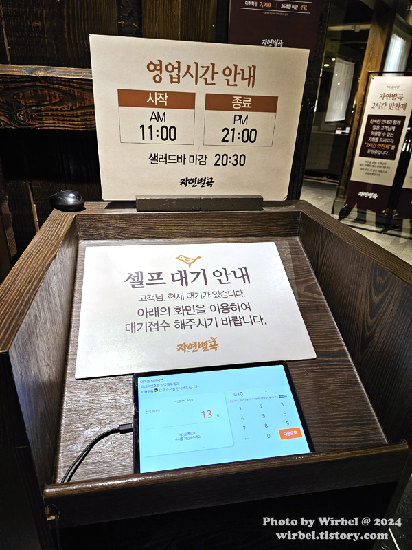 송파 가든파이브 식당 자연별곡 셀프 대기 안내.