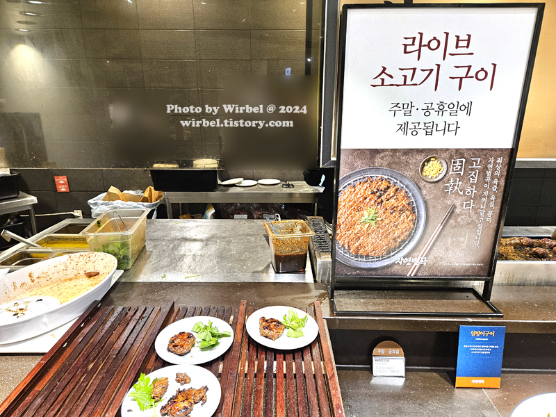 자연별곡 주말 메뉴 라이브 소고기 구이.