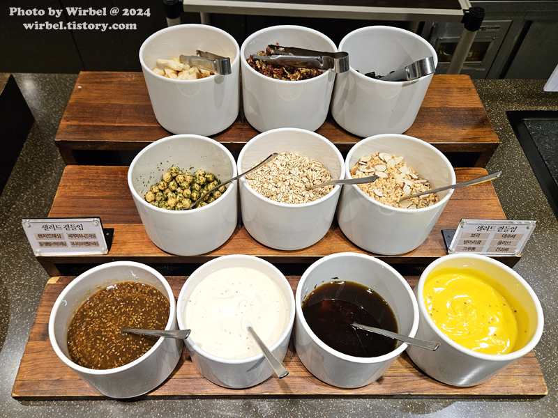 미나리오리엔탈드레싱, 렌치드레싱, 들기름발사믹드레싱, 씨겨자허니드레싱.