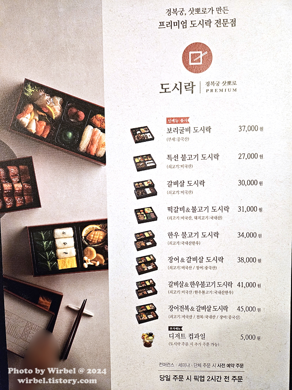 경복궁, 삿뽀로 프리미엄 도시락 메뉴 가격.