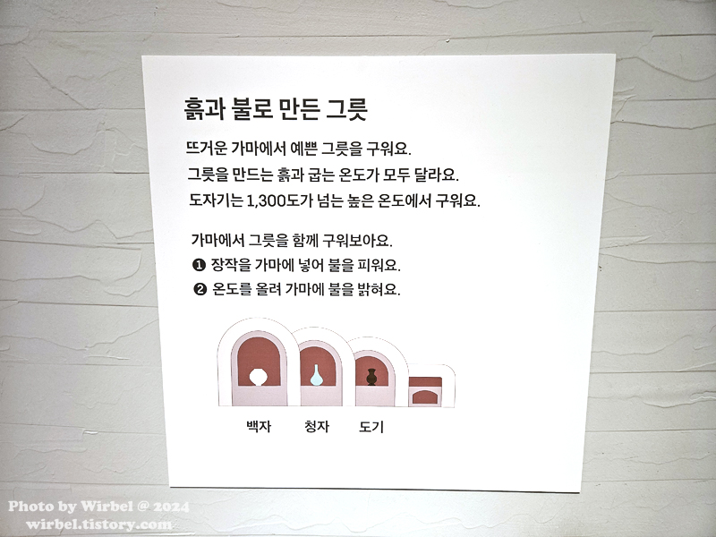 도기, 청자, 백자의 굽는 온도에 대해서 이해를 도와줍니다.
