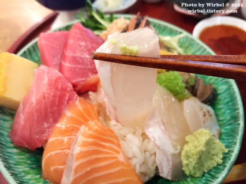 카이센동 전문점이라 사시미의 상태는 좋습니다.