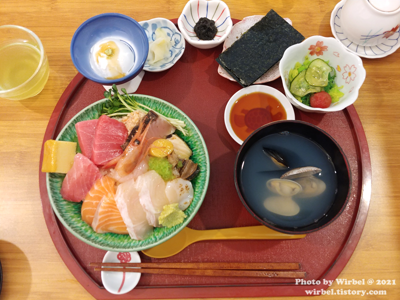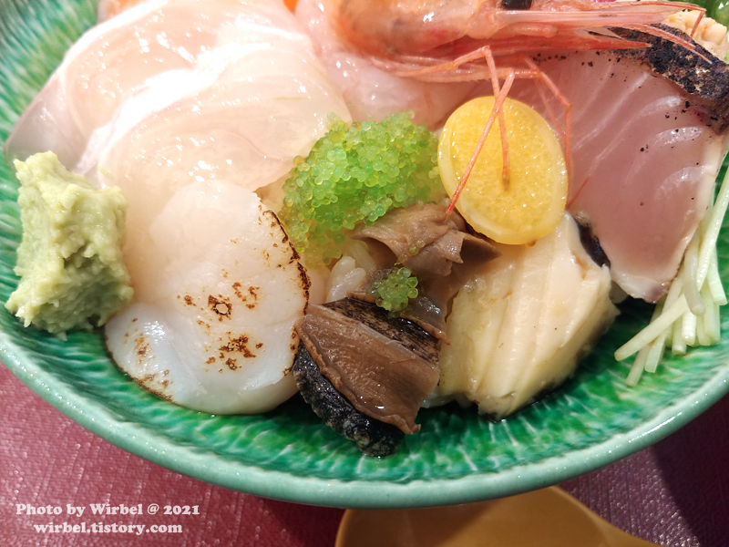 자왕무시가 먼저 나오고 잠시 후에 주문한 카이센동이 나옵니다.