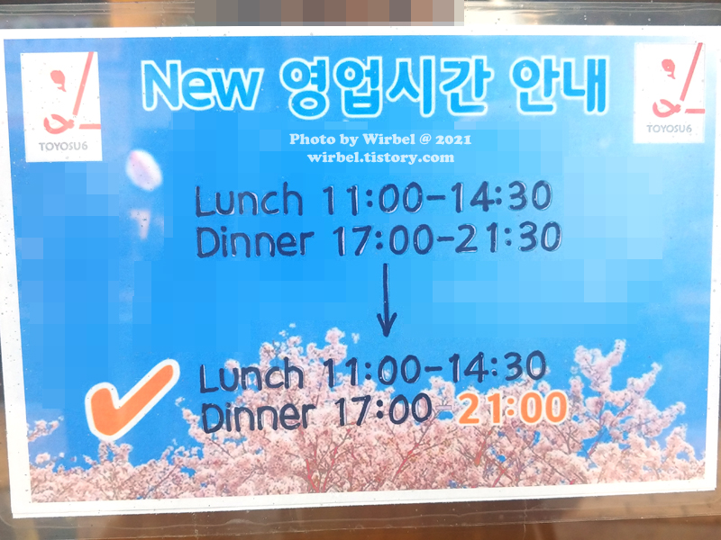 도요스6가 영업시간 안내.