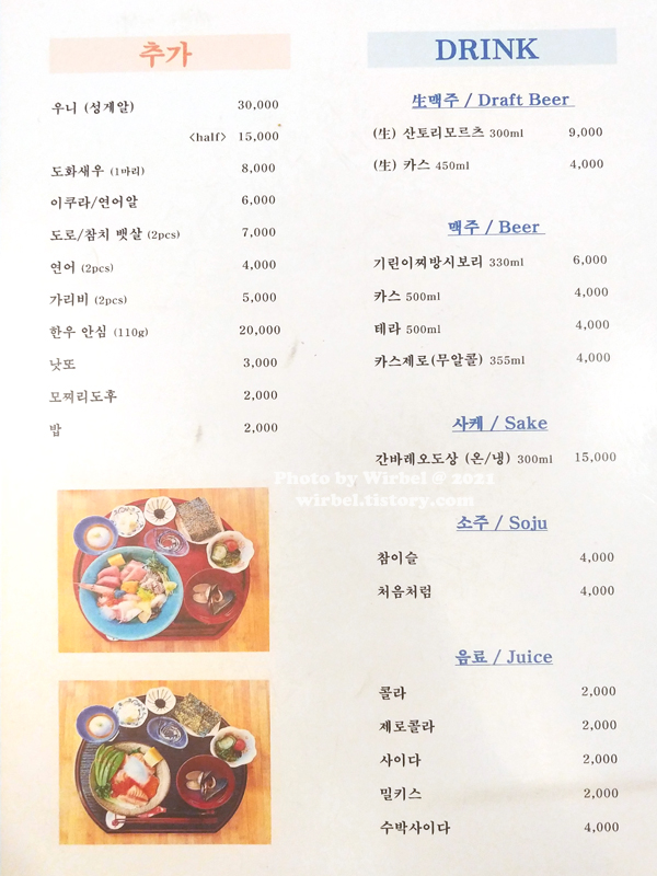 비어벨이 다녀온 맛집 & 여행(wirbel.tistory.com)의 비어벨입니다. 후기 남길 때는 긍정적인 시각으로 남기는 편입니다. ^^ 방문했던 시기에 따라 맛, 가격, 서비스 등이 지금과 다를 수 있는 부분을 참고하시고요. 음식점에 대한 생각은 지극히 주관적이니 맛집 후기는 참고만 하시는 거 다들 아시죠?! ^^ |