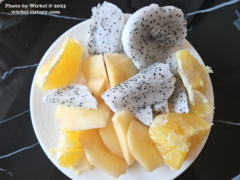 과일은 아침에 잘 깎아서 먹었습니다.
