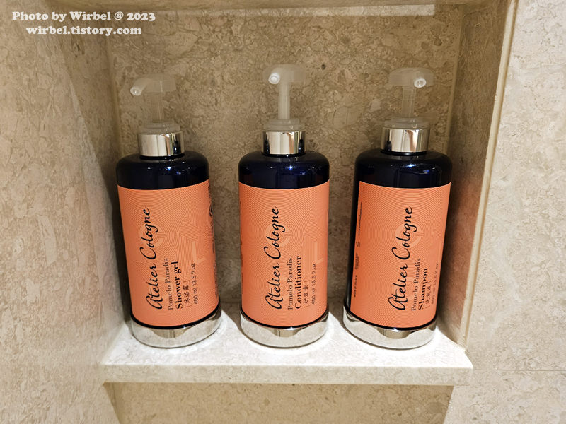 아틀리에 코롱(Atelier Cologne) 샤워젤, 컨디셔너, 샴푸.
