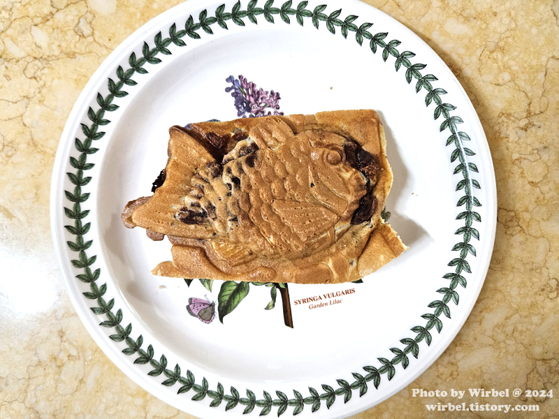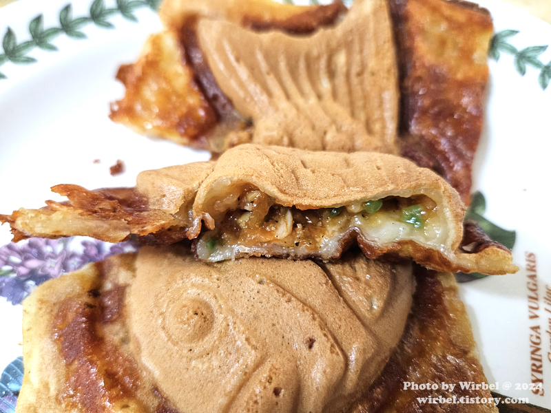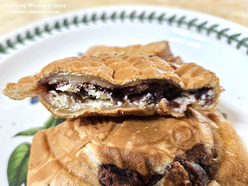 붕어빵 반죽에 비해서는 속재료가 많아선지 팥이 듬성듬성 보이는군요.