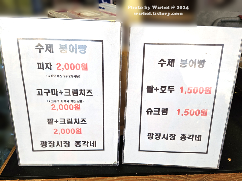 광장시장 붕어빵 맛집 총각네붕어빵 가격.
