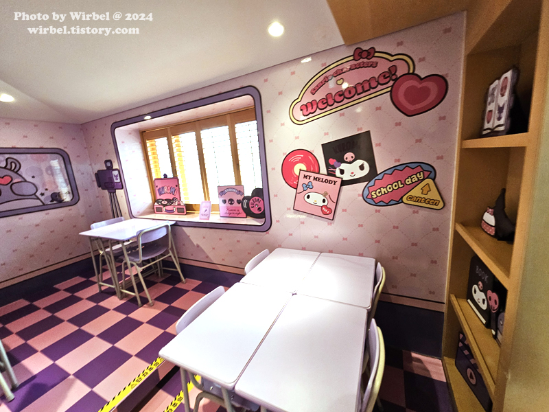 계단으로 올라와서 왼쪽이 산리오 교실이고 오른쪽이 산리오 포토룸입니다.