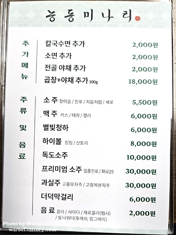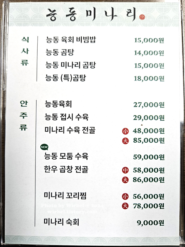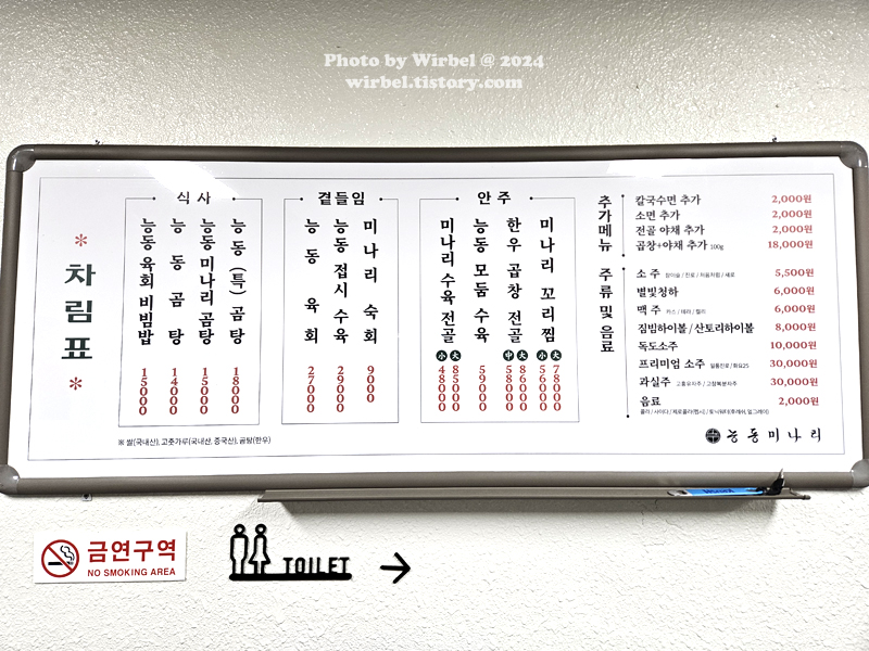 성수 능동미나리 메뉴 가격.