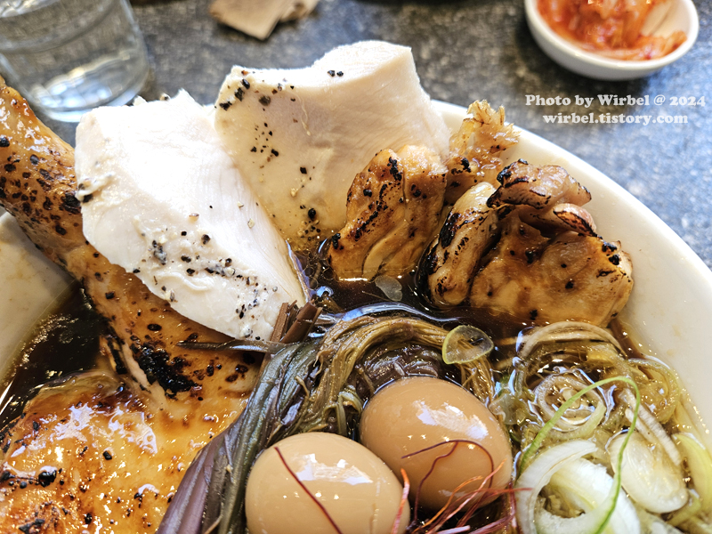 라무라 닭 라멘에는 닭다리살, 수비드 닭가슴살 고명도 있습니다.