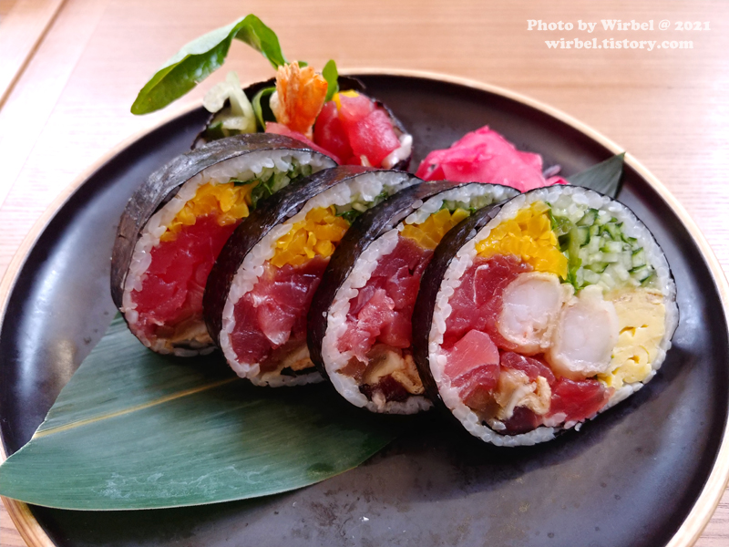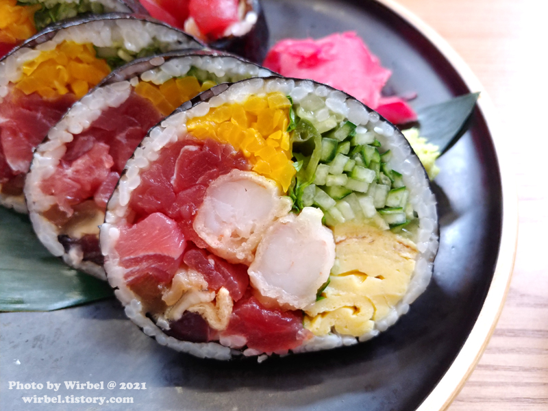 진작 후토마키에는 와사비와 초생강을 취향껏 곁들여 먹으면 더 맛납니다.