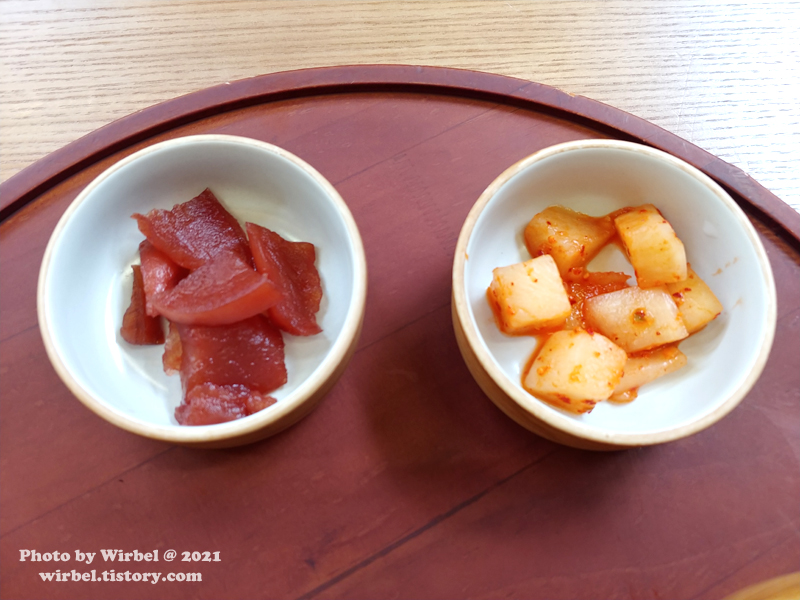 밑반찬 단무지, 깍두기.