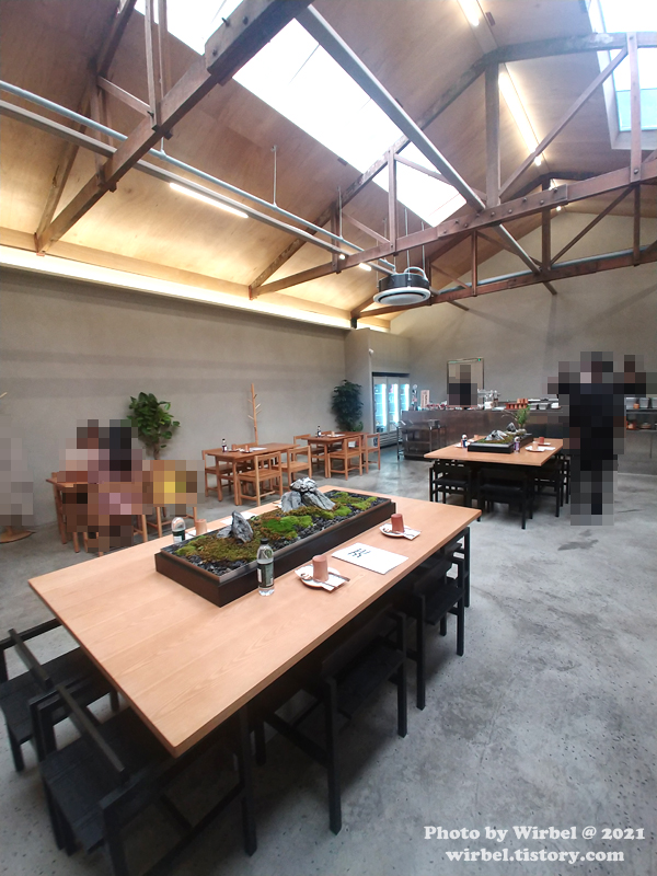 작은 공장을 개조한 듯 층고가 높고 채광이 있어서 카페 같은 분위기입니다.