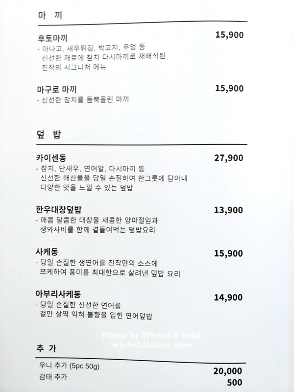 뚝섬역 진작다이닝 메뉴.