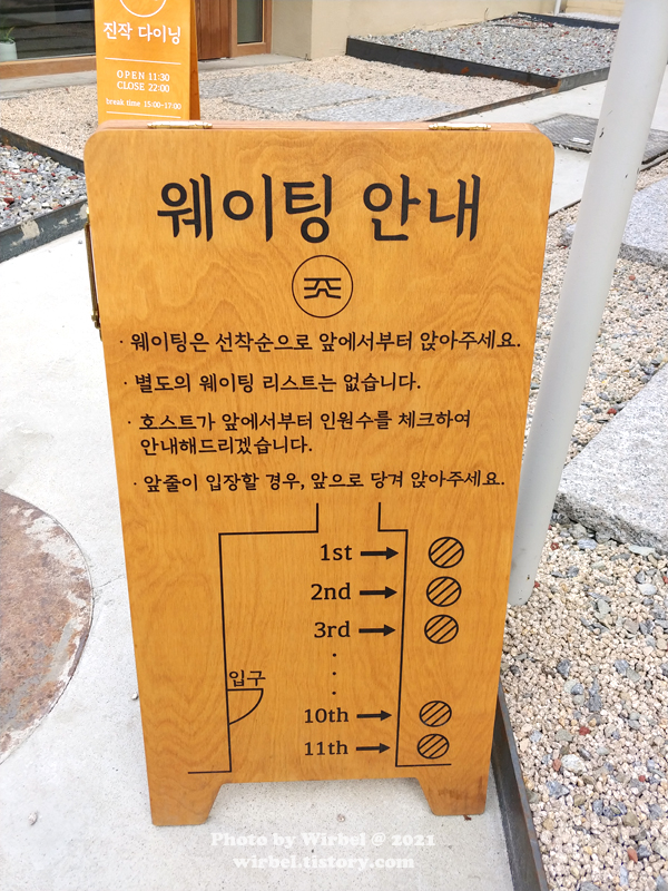 진작다이닝 웨이팅 안내.